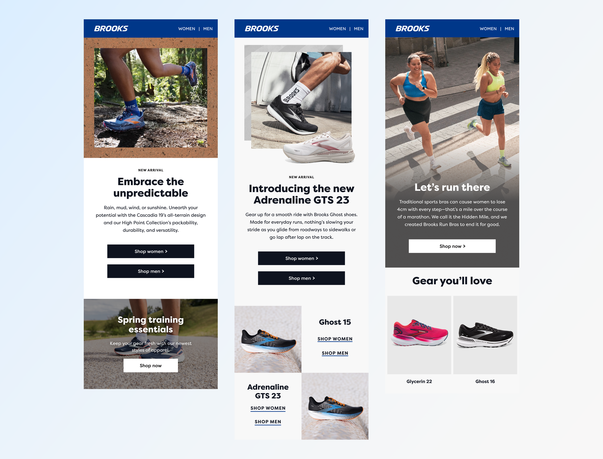 As Brooks entered a rebrand in 2023, the existing email template system was falling short. It was overly complex, inconsistent, and difficult to use—slowing down designers and diluting brand clarity.